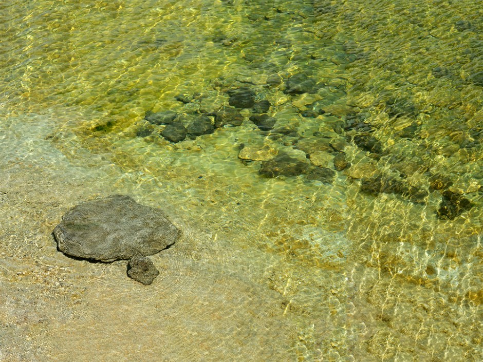 These two rocks appear to be a turtle inching along a protected lakeshore in Yellowstone National Park.