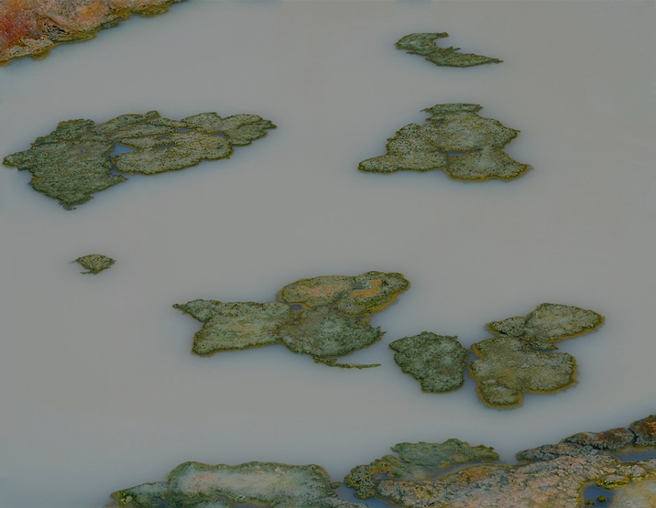 The “flotilla” on this milky pond are fragments of the bubblings and churnings of nature at Yellowstone National Park in Wyoming.