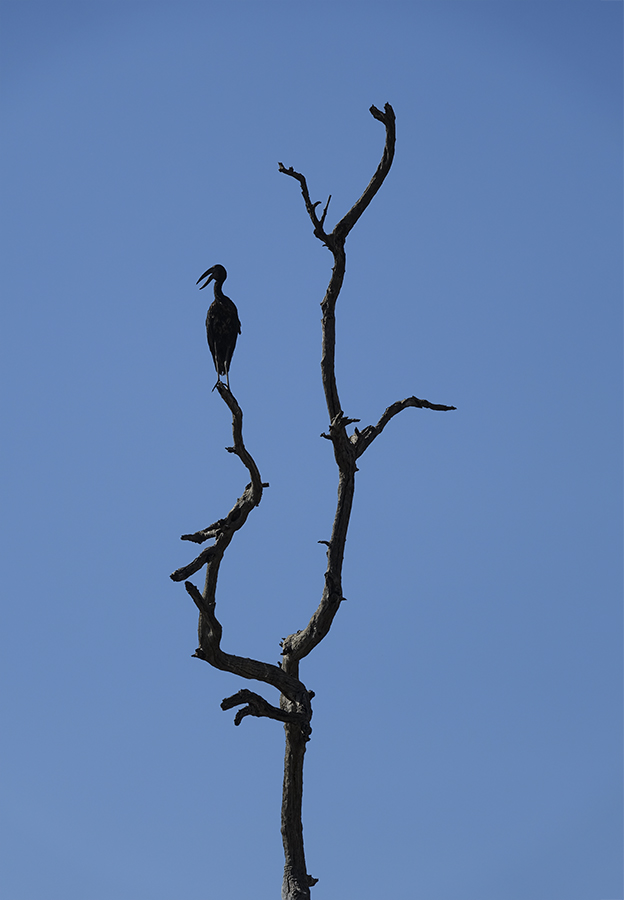 African Openbill Stork Silhouetted on a Bare Tree, Botswana #1150