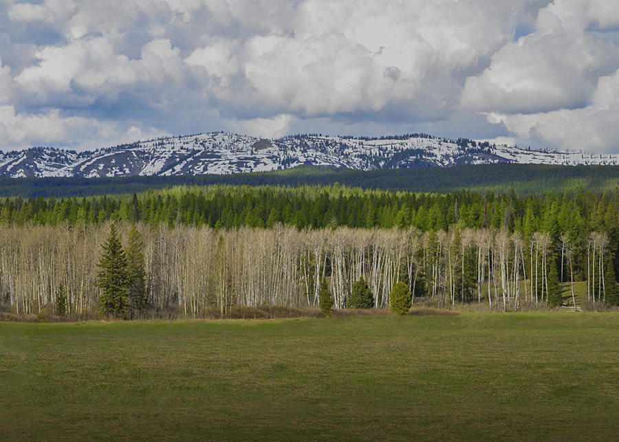 Aspen, Evergreens, and Snow-Capped Tetons